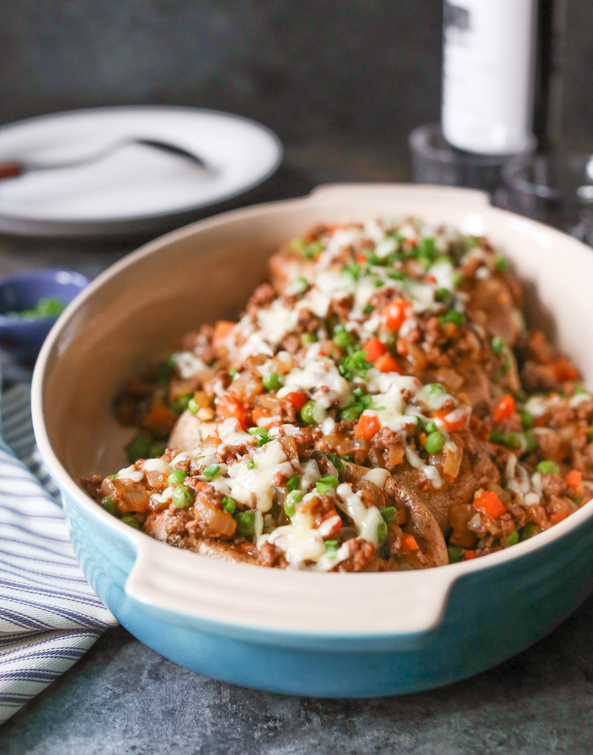 I highly recommend making this recipe as written—it truly is delightful (and Dude Diet approved!)—but as always, you do you. Want to lighten things up a little more? Sub ground chicken or 93% lean ground turkey for the beef. Add a couple handfuls of chopped baby spinach or kale to work in more greens! Play around with different cheeses, or ditch the dairy altogether. And if you’re not a fan of white potatoes, try making these with sweet spuds. I respect your creativity!