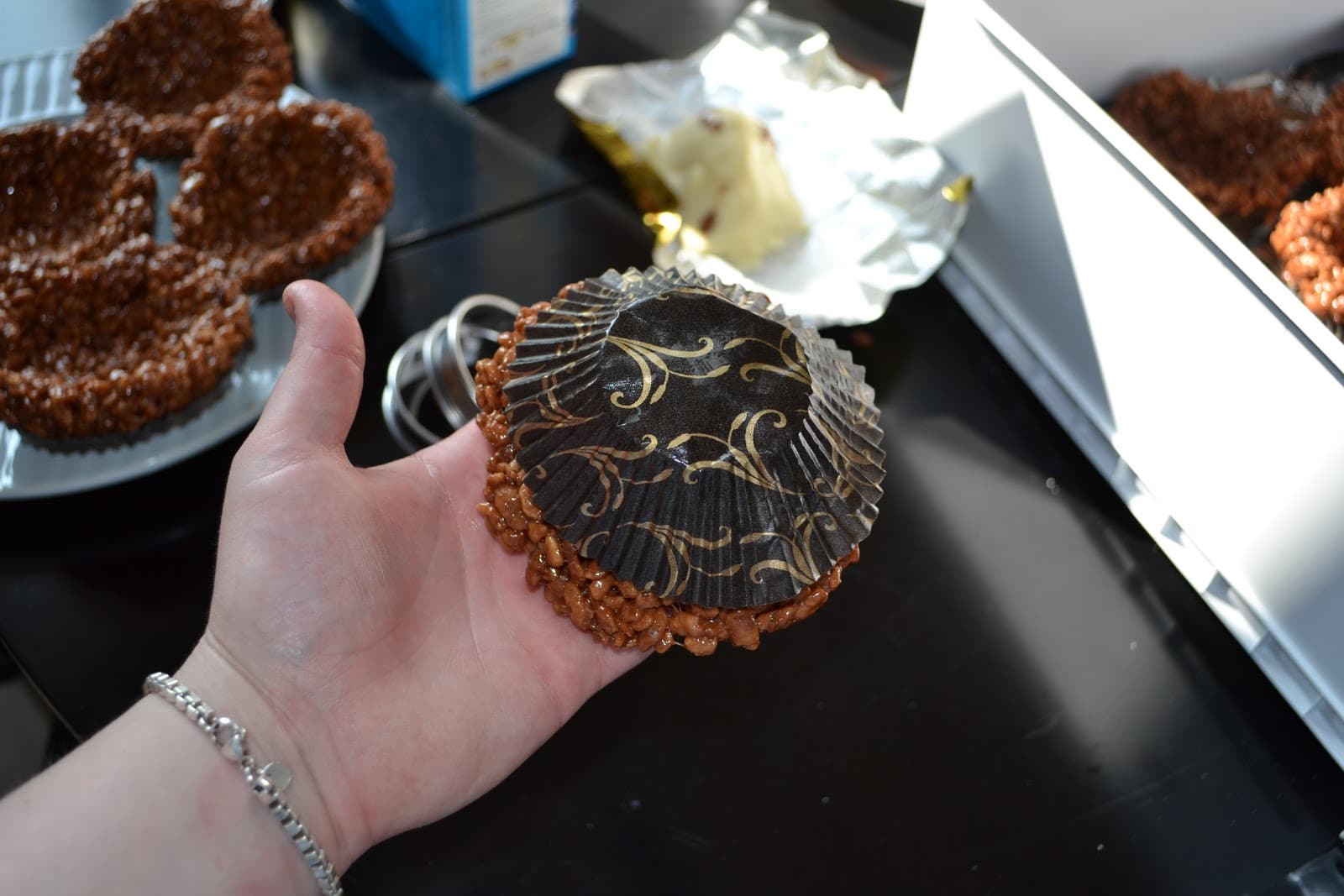 -Let them cool in fridge for about 30 minutes. Then use a spoon to spread a very very thin layer of nutella in the bottom of each crisp (optional). Then back in the fridge!