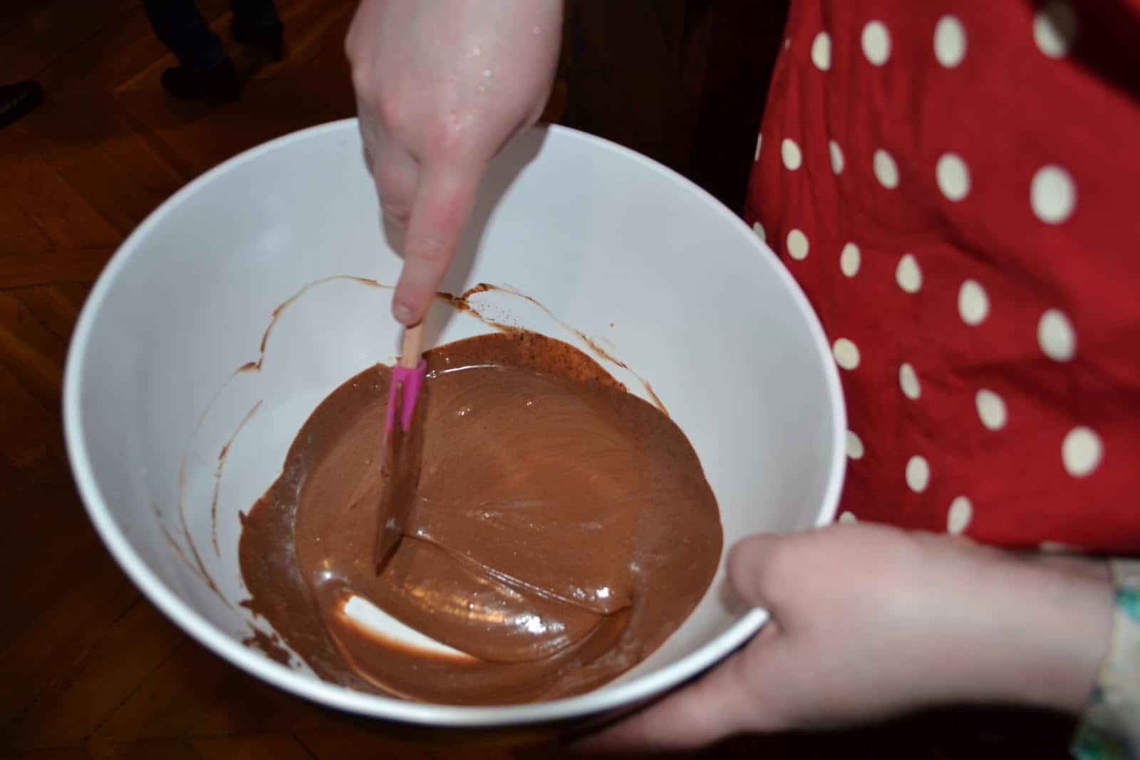 -After 40 minutes or so, remove the mousse from the fridge and whip it with an electric mixer until it has a thick, smooth consistency
