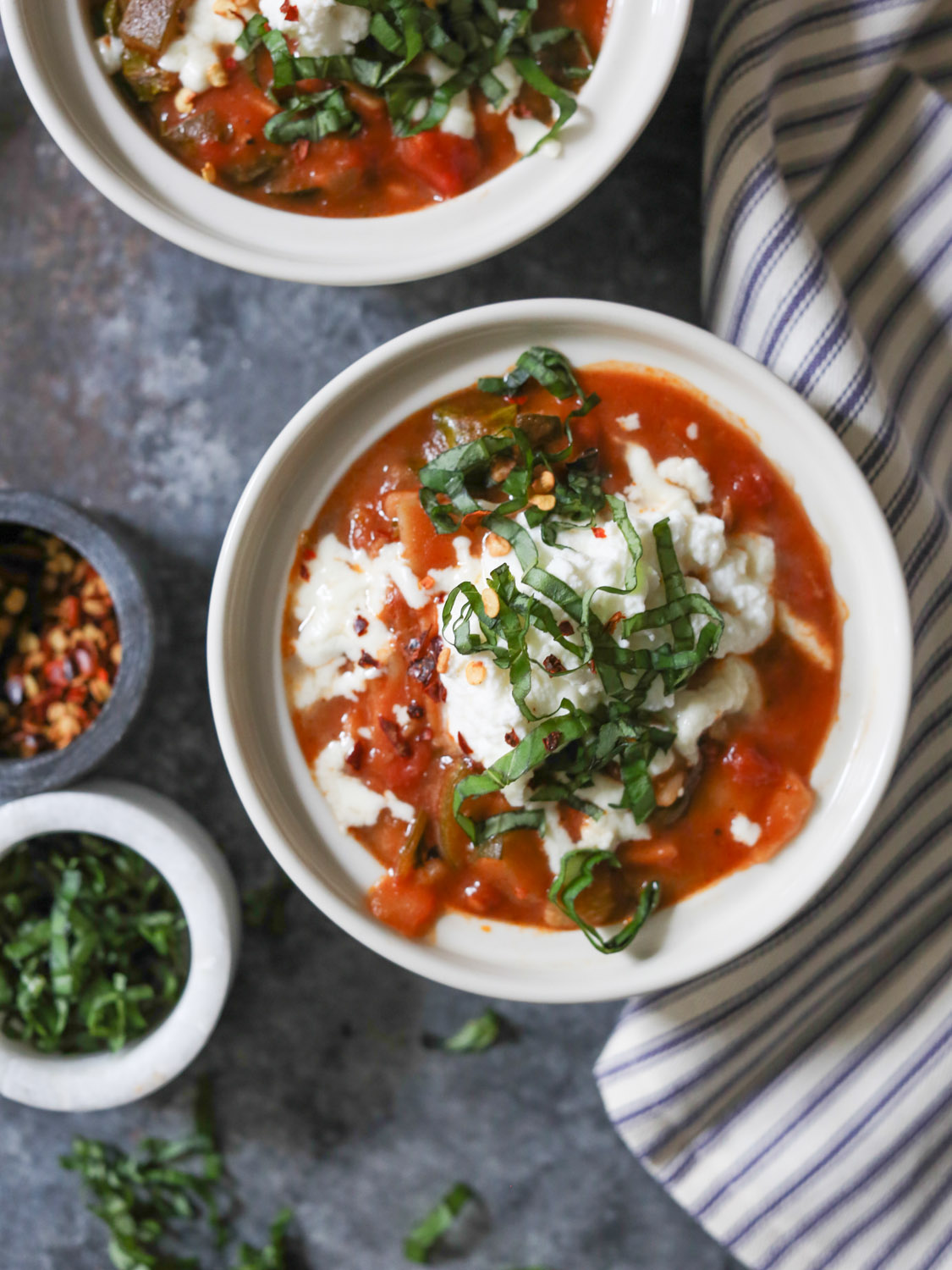 - -Ladle the soup into bowls and top each serving with 2 tablespoons ricotta, 2 tablespoons mozzarella (or more if you want to get crazy) and plenty of fresh basil. Serve immediately.