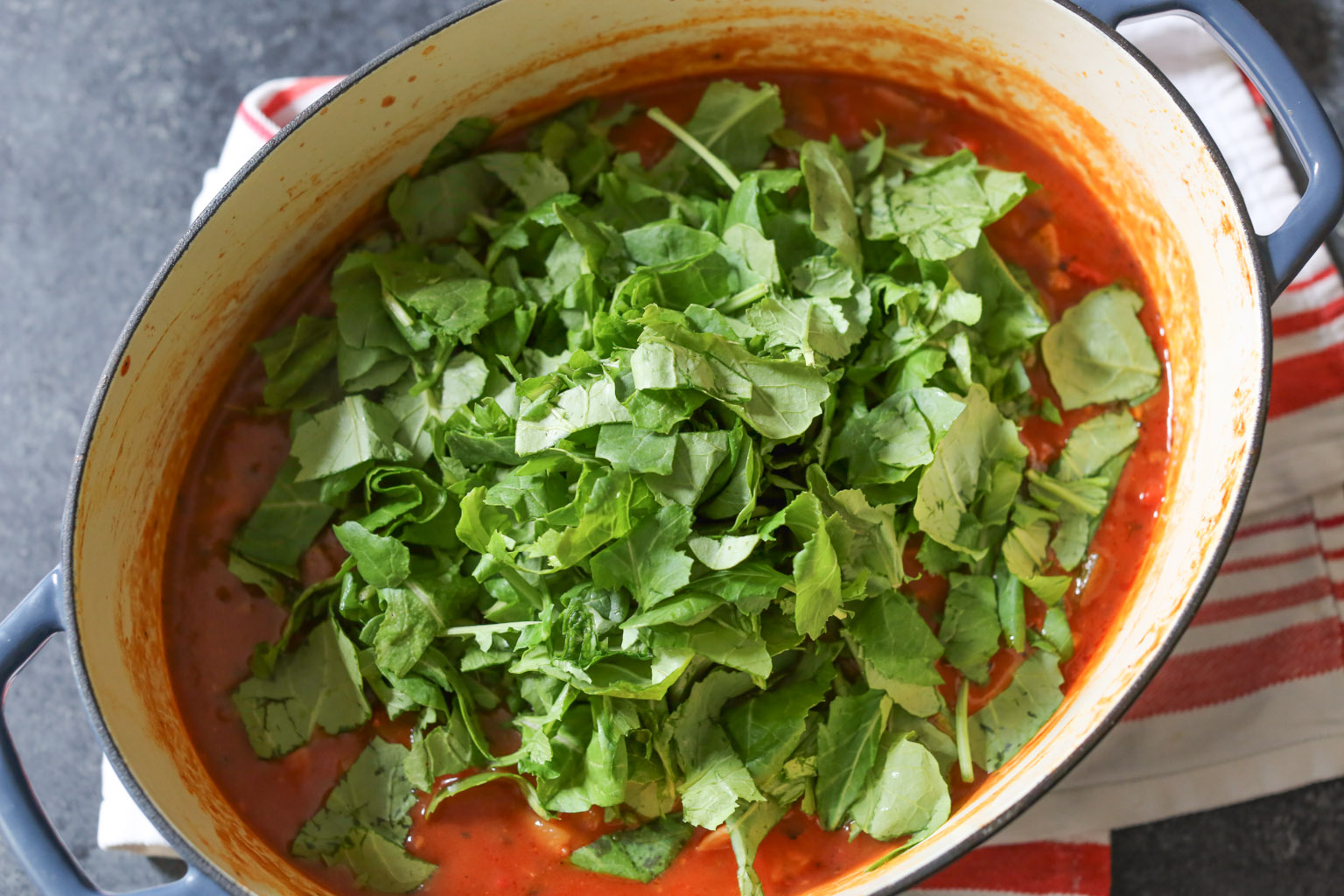 - Add the kale to the soup. (It will seem like a lot, but it’s going to cook down, I promise.) Cook for 1-2 minutes, just until the kale has wilted. (If your soup is thicker than you'd like, feel free to thin it with a little extra vegetable broth.) Taste and season with salt and pepper if needed.