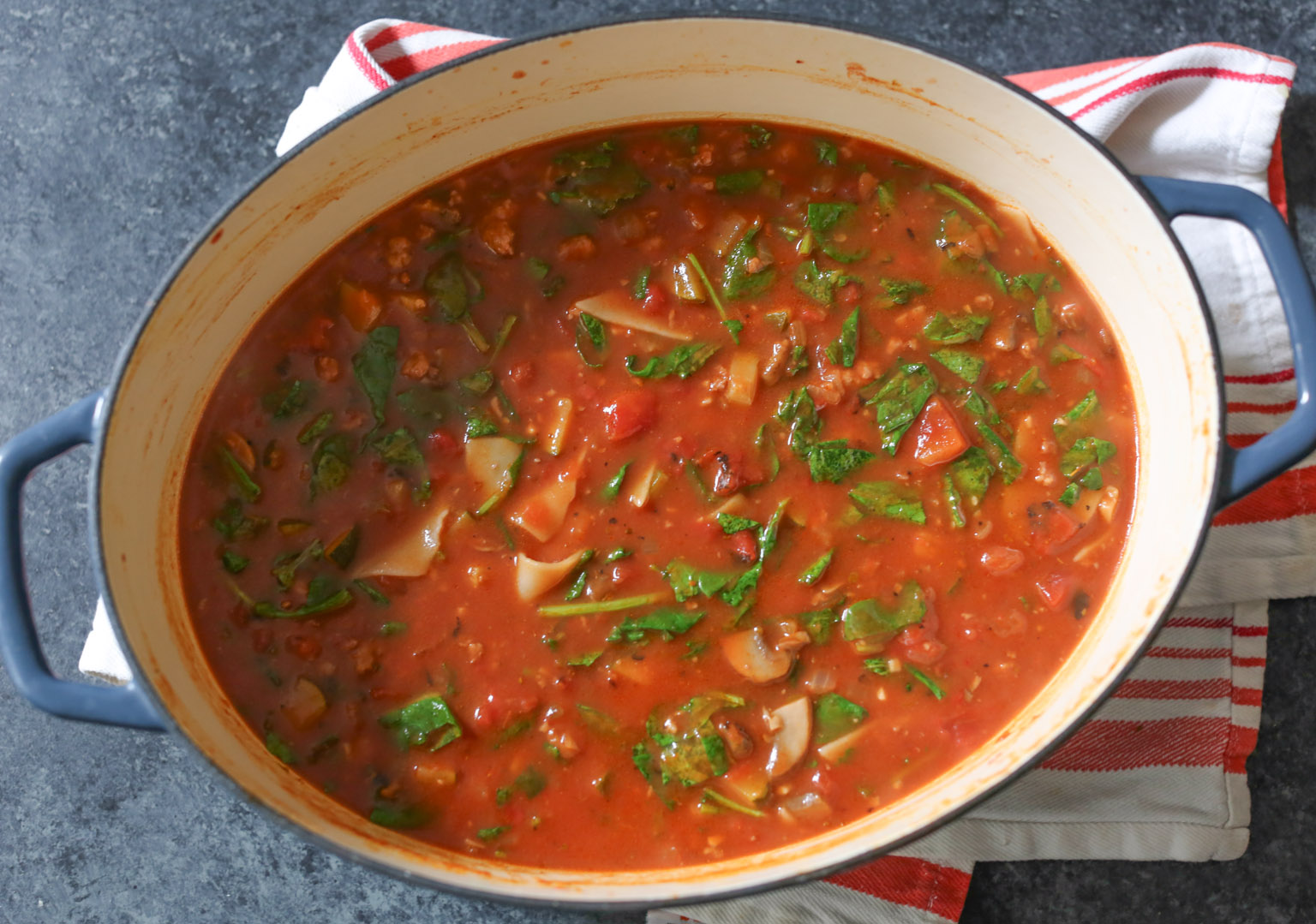 Sausage and Kale Lasagna Soup: (Serves 4 generously)