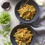 I made my (now-husband) make this for me for Valentine’s Day a few years ago … and now any time we have a date night in or it’s his turn to cook, I request this recipe. The pesto here is unlike anything I’ve ever tasted — in a good way! It’s incredible! We have done this both with chickpea pasta and brown rice pasta (Tinkyada), and both turn out excellent. DO NOT SLEEP ON THE GARLICKY BREADCRUMBS!
