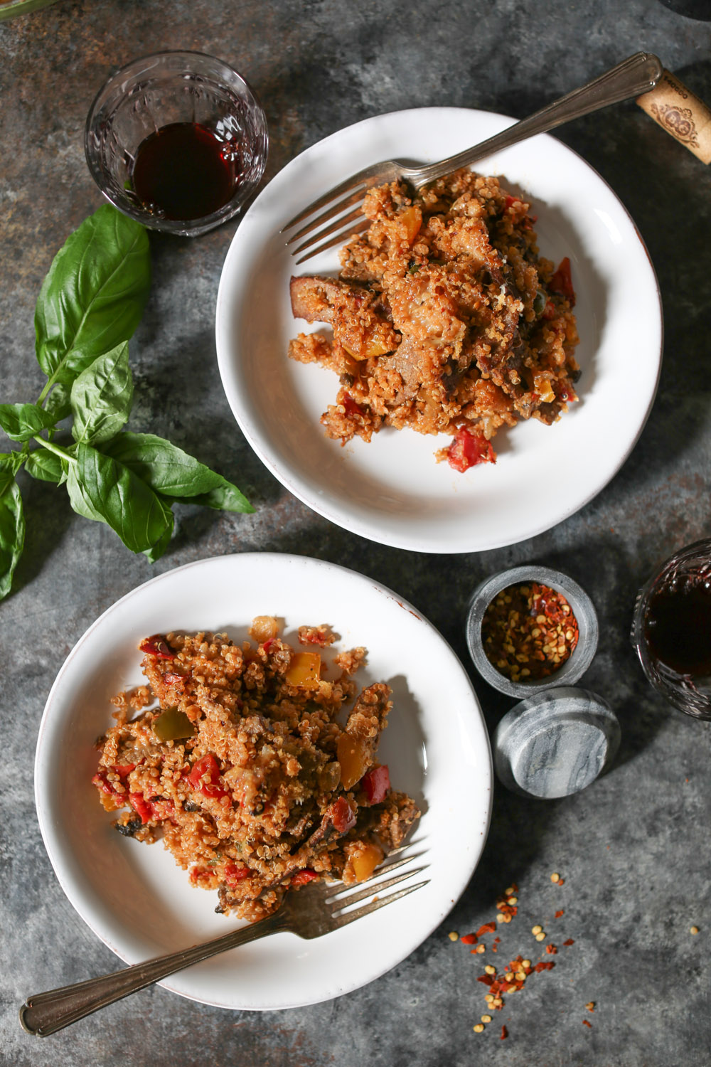 I know I say this about every quinoa bake, but this one might be my best yet? Loaded with thinly sliced steak, sautéed onions, bell peppers, portobellos, marinara, and cheese, it’s got all the beloved flavors of Philly’s dankest hybrid sub. My live-in cheesesteak connoisseur (aka Logan) has now eaten it for three straight days (last night he ate it as a “side” with his chili), and I don’t think I’ve heard such ecstatic grunting since the Cheeseburger Quinoa Bake’s 2015 debut. Great success.